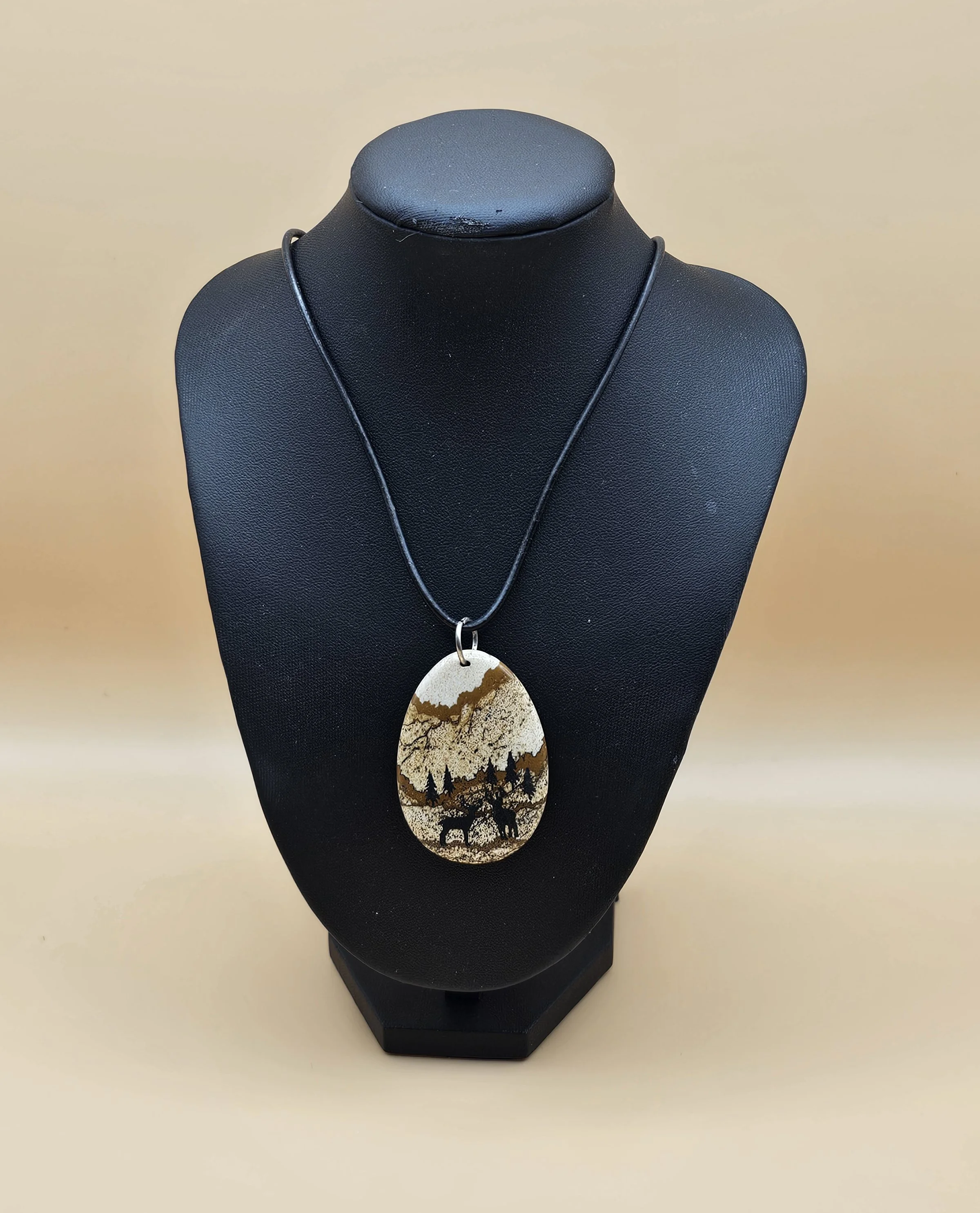 Shop › BCWR-00734-Picture Jasper - Deer Image 1 of 3 Image 2 of 3 Image 3 of 3 BCWR-00734-Picture Jasper - Deer $34.99 Engraved Picture jasper with faux leather cording. Cord length approximately 18 inches. Add To Cart Added! Engraved Picture jasper with faux leather cording. Cord length approximately 18 inches.