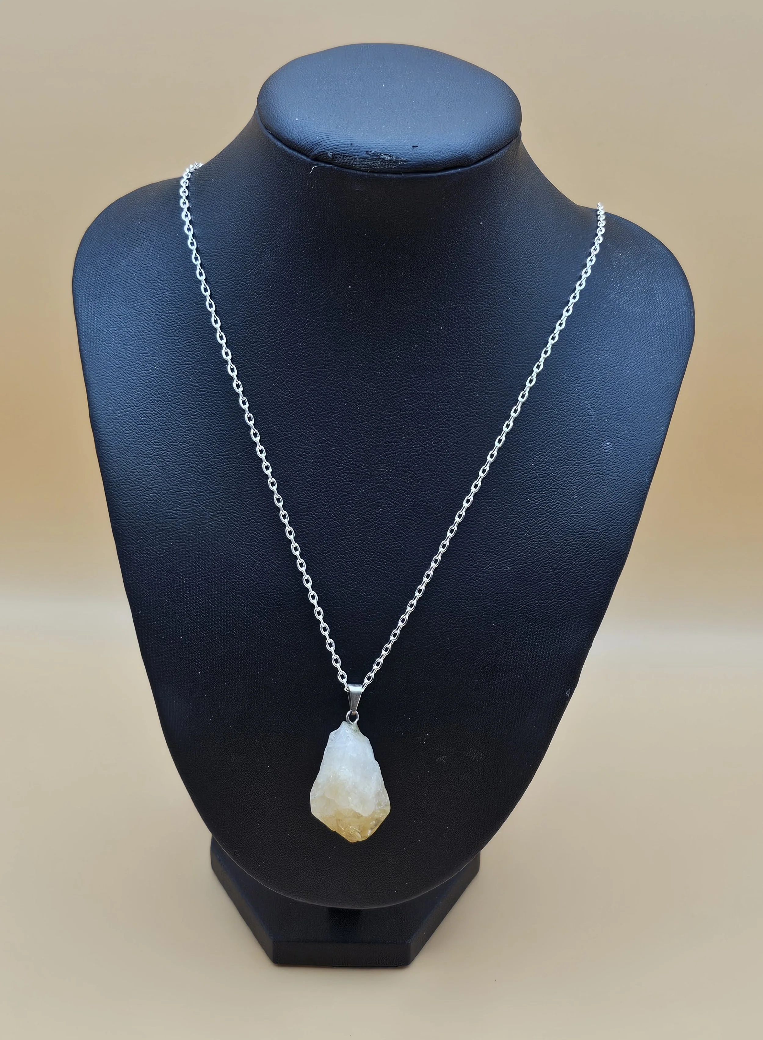 Shop › BCWR-CP703S-Natural Citrine Point Image 1 of 3 Image 2 of 3 Image 3 of 3 BCWR-CP703S-Natural Citrine Point $9.99 Silver chain with spring ring clasp, approx. 24 inch length, pendant size approx. 0.75 inches x 1.00 inches. Add To Cart Added! Silver chain with spring ring clasp, approx. 24 inch length, pendant size approx. 0.75 inches x 1.00 inches.