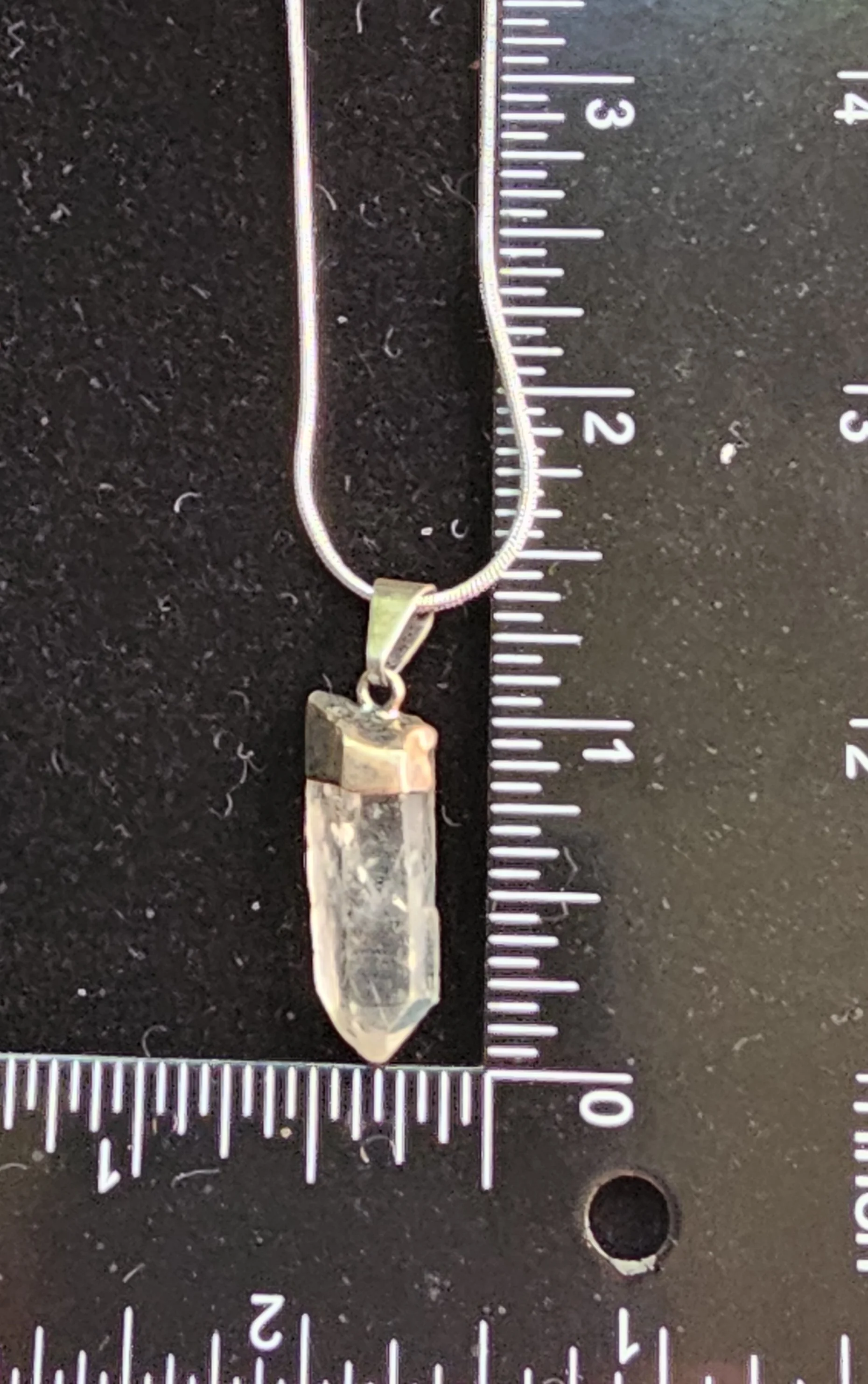 Shop › BCWR-CP501S2-Natural Quartz Point-Necklace Image 1 of 3 Image 2 of 3 Image 3 of 3 BCWR-CP501S2-Natural Quartz Point-Necklace $9.99 Silver chain with lobster claw clasp, approx. 22 inch length, pendant size approx. 0.50 inches x 1.20 inches. Add To Cart Added! Silver chain with lobster claw clasp, approx. 22 inch length, pendant size approx. 0.50 inches x 1.20 inches.